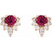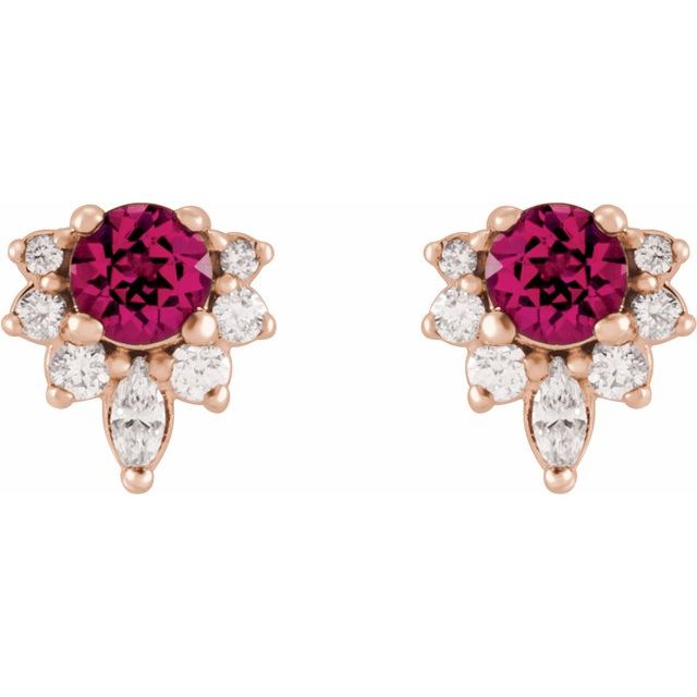 14K Rose Natural Pink Tourmaline & 1/6 CTW Natural Diamond Earrings