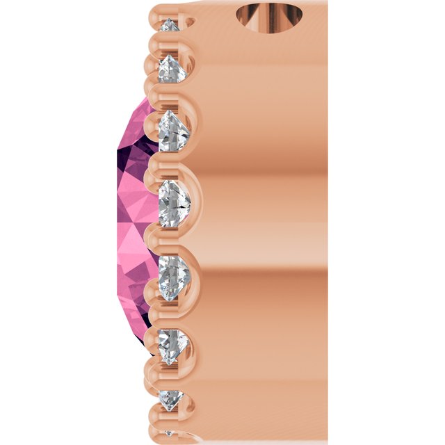 Description: Natural Pink Tourmaline And 1/8 Ctw Natural Diamond Halo-Style Pendant