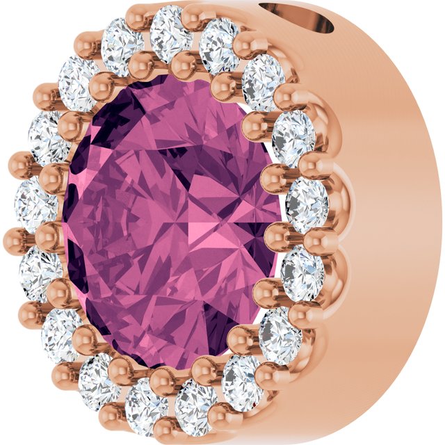 / Pendant / Set / 14K Rose / Round / Natural Pink Tourmaline / 6Mm :: 1/8 Ctw / Natural Diamond / I1, G-H / Polished / Natural Pink Tourmaline And 1/8 Ctw Natural Diamond Halo-Style Pendant