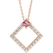 / Necklace / Set / 14K Rose / Square / Natural Pink Tourmaline / 3.5 X 3.5Mm :: 3/8 Ctw / Natural Diamond / I1, G-H / 16-18 In / Polished / Natural Pink Tourmaline And 3/8 Ctw Natural Diamond Necklace