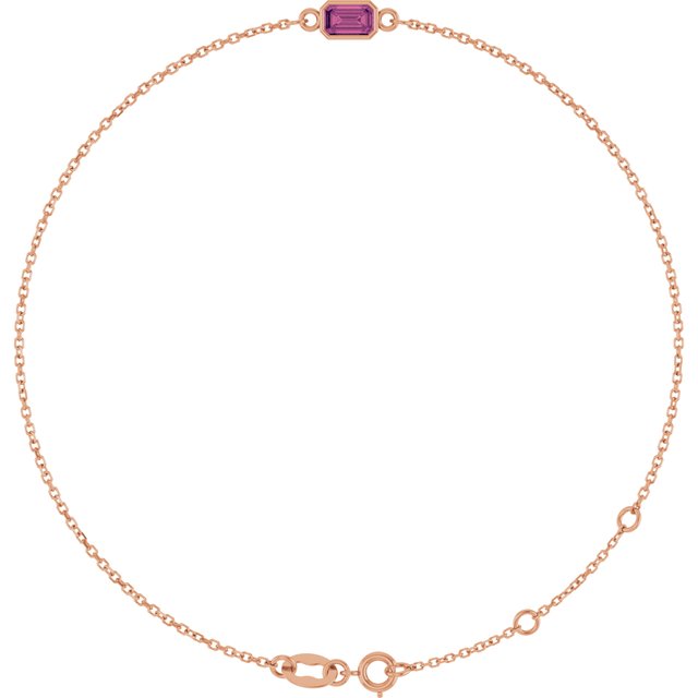 Brc808 / Bracelet / 14K Rose / Set / 1-Stone / Natural Pink Tourmaline / Emerald / 5 X 3 Mm / 12.6 X 3.9 Mm / 6 1/2-7 1/2 In / Polished / Natural Pink Tourmaline Bezel-Set Bracelet