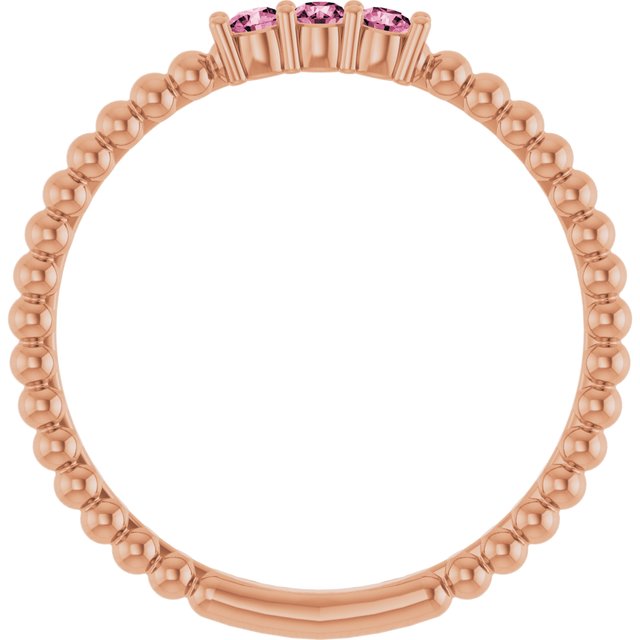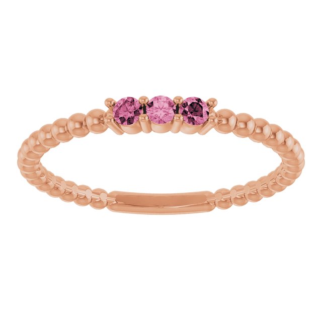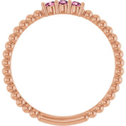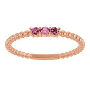 14K Rose Natural Pink Tourmaline Beaded Ring