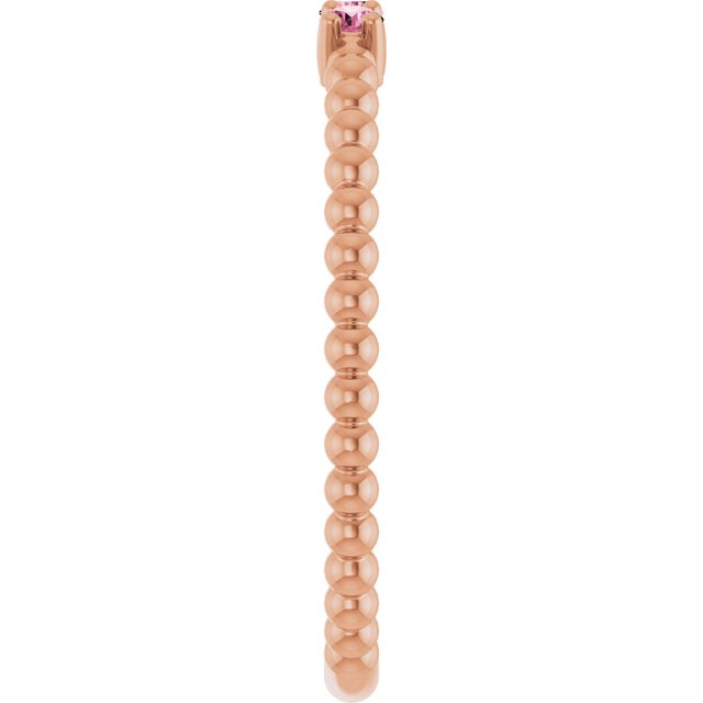 / Ring / Set / 14K Rose / Natural Pink Tourmaline / Round / 2 Mm / Polished / Natural Pink Tourmaline Beaded Ring