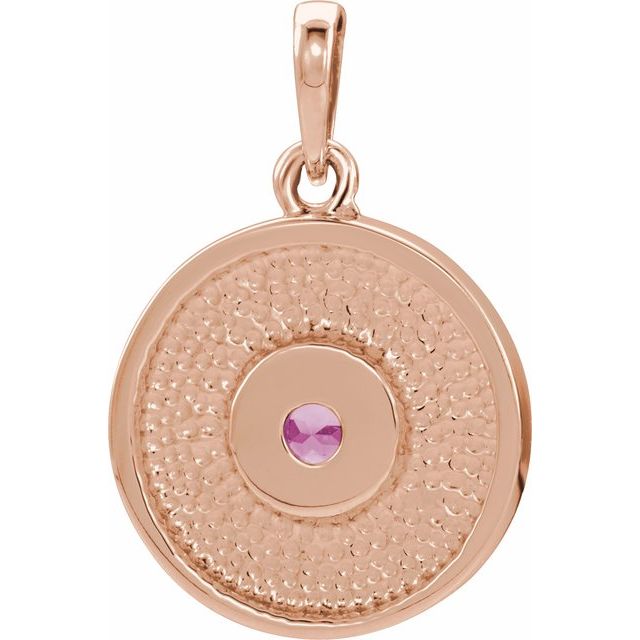 14K Rose Natural Pink Tourmaline Disc Pendant