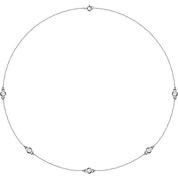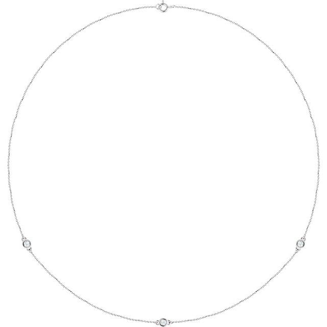 These necklaces are adorned with multiple round lab-grown diamonds set in bezel prongs for a secure and refined look. Available in configurations of three or five stations, the total carat weight ranges from 1/4 CTW up to a stunning 1 CTW, offering options that suit both subtle and bold preferences. The primary stones measure between approximately 2.4 mm and 3.65 mm, each exhibiting SI1-SI2 clarity and G-H color grading, ensuring brilliant sparkle and exceptional quality.