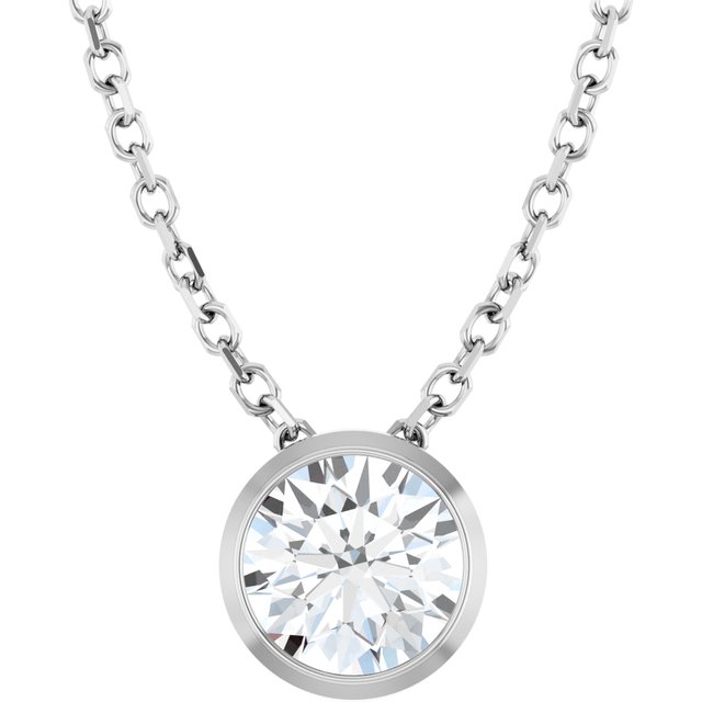 14K Lab-Grown Diamond Bezel-Set Necklace 16-18" with 1/2 to 3/4 CT Diamonds