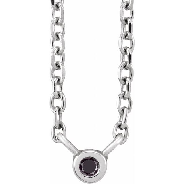 Description: .015 Ct Natural Black Diamond Bezel-Set Solitaire Necklace