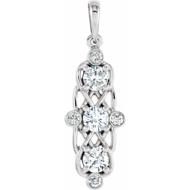 14K White 1/2 CTW Natural Diamond Three-Stone Pendant - Elegant Jewelry by Brand