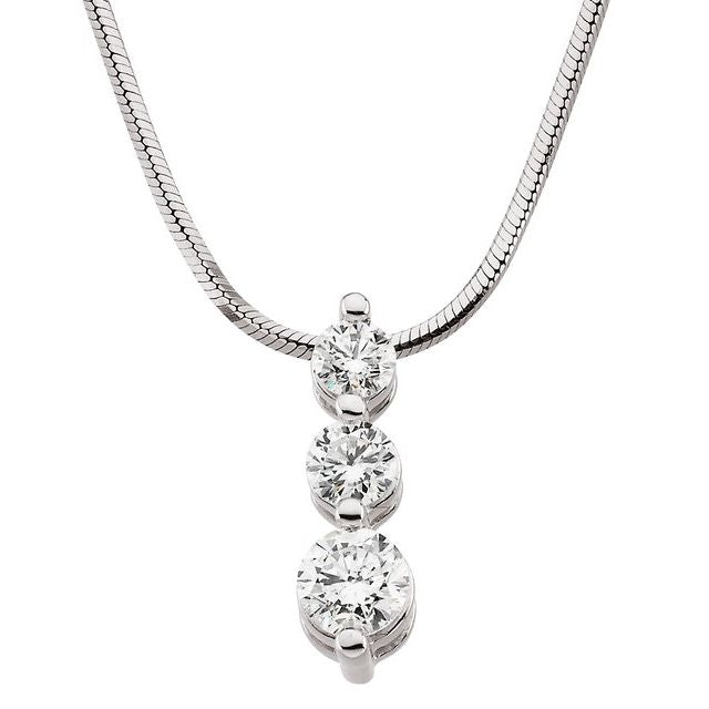 / Necklace / Set / 14K White / Round / Natural Diamond / 5.2Mm :: 9/10 Ctw / Natural Diamond / I1, G-H / 18 In / Polished / 9/10 Ctw Natural Diamond 3-Stone Necklace