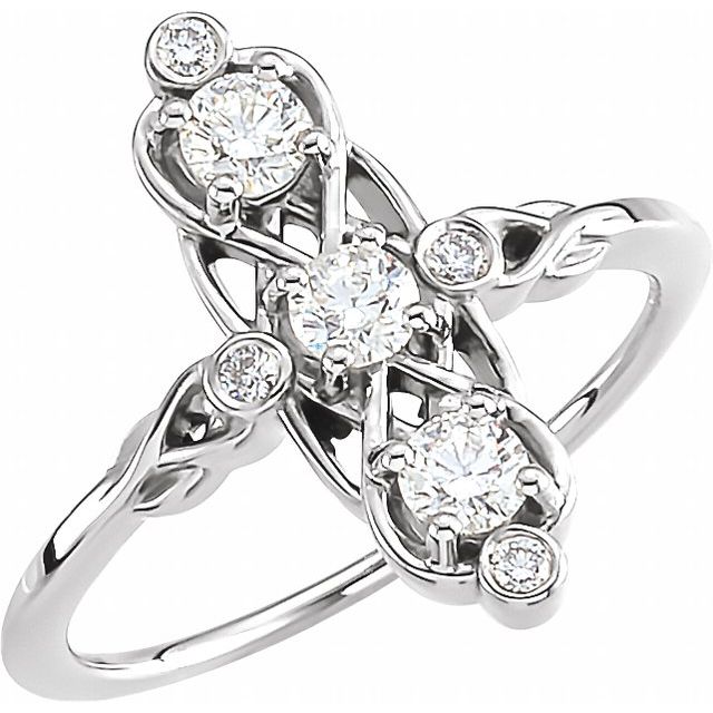 / Ring / Set / 14K White / Natural Diamond / Round / 3.4 Mm / Natural Diamond / Polished / 1/2 Ctw Natural Diamond 3-Stone Ring