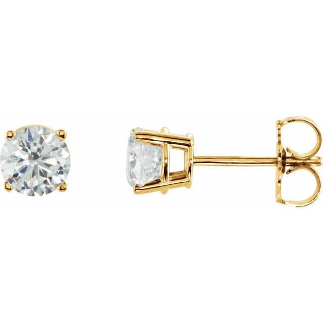 / 14K Yellow / Set / Round / Natural Diamond / Pair / 5Mm :: 1 Ctw / I3, G-H / Friction / Friction Backs Included / 4-Prong / Polished / 1 Ctw Natural Diamond Stud Earrings