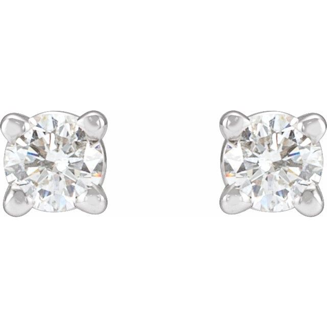 / Platinum / Set / Round / Natural Diamond / Pair / 2.8Mm :: 1/5 Ctw / I3, G-H / Threaded / Threaded Backs Included / 4-Prong / Polished / 1/5 Ctw Natural Diamond Stud Earrings With Backs