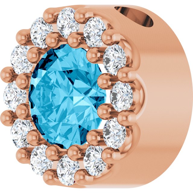 / Pendant / Set / 14K Rose / Round / Natural Aquamarine / 4Mm :: 0.08 Ctw / Natural Diamond / I1, G-H / Polished / Natural Aquamarine And .08 Ctw Natural Diamond Halo-Style Pendant