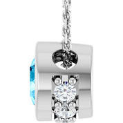 14K White Natural Aquamarine & .07 CTW Natural Diamond 18" Necklace