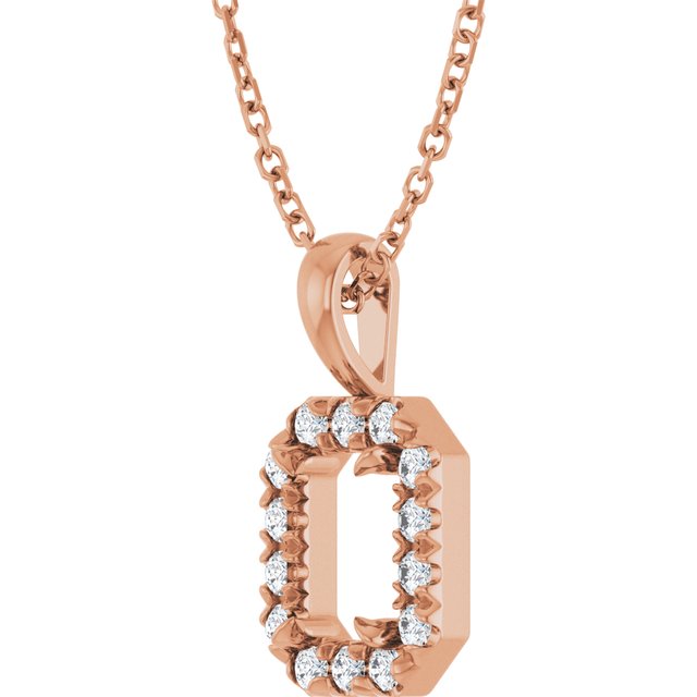 / Necklace / Semi-Set / 14K Rose / Emerald / 6 X 4Mm :: 1/5 Ctw / Natural Diamond / I1, G-H / 16-18 In / Polished / 1/5 Ctw Natural Diamond Semi-Set French-Set Halo-Style Necklace