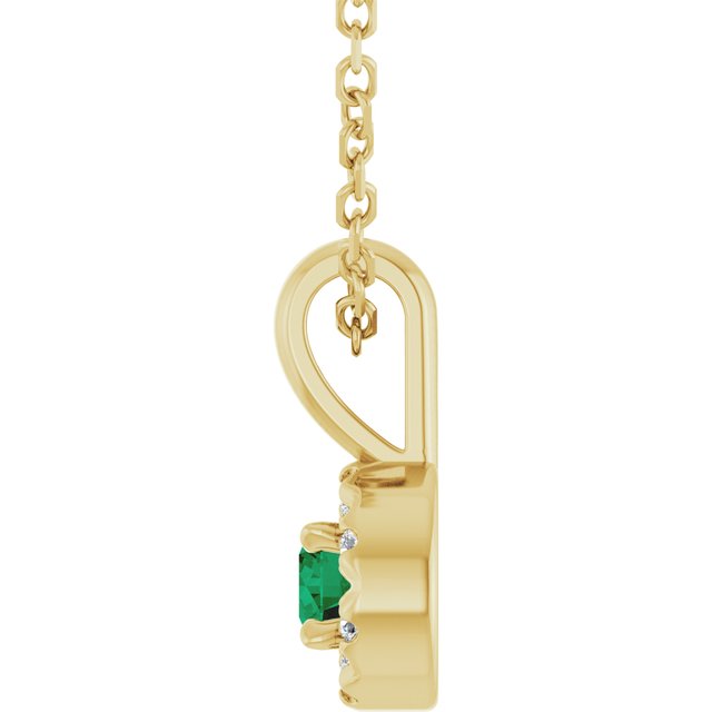 14K Yellow 3 mm Lab-Grown Emerald & .03 CTW Natural Diamond 16-18" Necklace