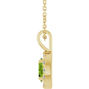 Description: Natural Peridot And .05 Ctw Natural Diamond French-Set Halo-Style Necklace