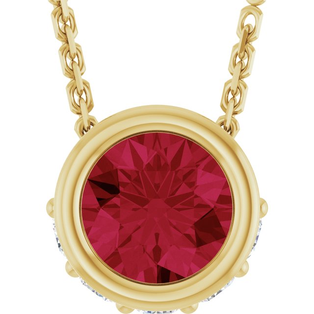 14K Yellow Lab-Grown Ruby & .07 CTW Natural Diamond 18" Necklace
