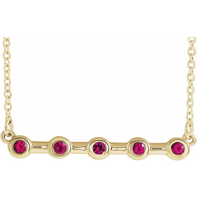 14K Yellow Lab-Grown Ruby Bezel-Set Bar 16" Necklace