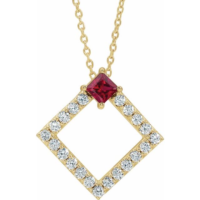 / Necklace / Set / 14K Yellow / Square / Natural Ruby / 3.5 X 3.5Mm :: 3/8 Ctw / Natural Diamond / I1, G-H / 16-18 In / Polished / Natural Ruby And 3/8 Ctw Natural Diamond Necklace
