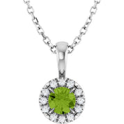 Description: Natural Peridot And .05 Ctw Natural Diamond French-Set Halo-Style Necklace
