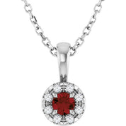/ Necklace / Set / Sterling Silver / Round / Natural Mozambique Garnet / 3Mm :: 0.03 Ctw / Natural Diamond / I1, G-H / 16-18 In / Polished / Natural Mozambique Garnet And .03 Ctw Natural Diamond French-Set Halo-Style Necklace