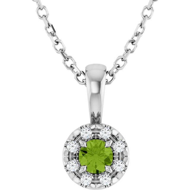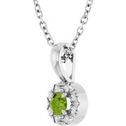 Description: Natural Peridot And .03 Ctw Natural Diamond French-Set Halo-Style Necklace