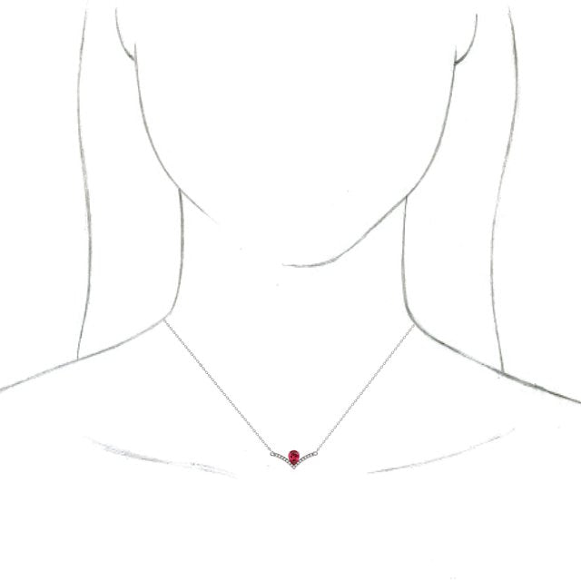 / Necklace / Set / Sterling Silver / Pear / Natural Ruby / 6 X 4Mm :: 0.06 Ctw / Natural Diamond / I1, G-H / 16 In / Polished / Natural Ruby And .06 Ctw Natural Diamond Necklace