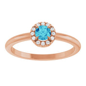 / Ring / Set / 14K Rose / Natural Blue Zircon / Round / 4 Mm / Natural Diamond / Polished / Natural Blue Zircon And .05 Ctw Natural Diamond French-Set Halo-Style Ring