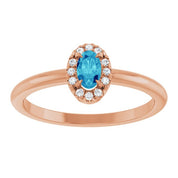 / Ring / Set / 14K Rose / Natural Blue Zircon / Oval / 5 X 3 Mm / Natural Diamond / Polished / Natural Blue Zircon And .05 Ctw Natural Diamond French-Set Halo-Style Ring