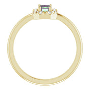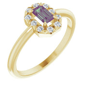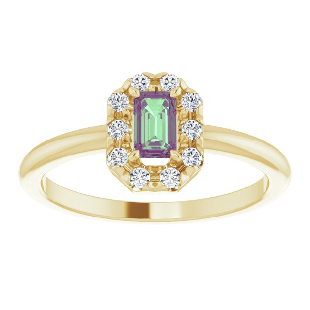 14K Yellow Lab-Grown Alexandrite & 1/8 CTW Natural Diamond French-Set Halo-Style Ring