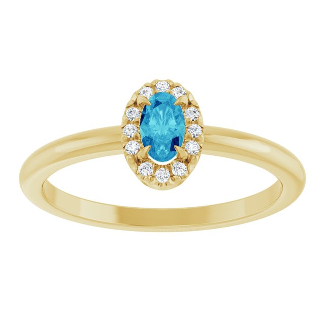/ Ring / Set / 14K Yellow / Natural Blue Zircon / Oval / 5 X 3 Mm / Natural Diamond / Polished / Natural Blue Zircon And .05 Ctw Natural Diamond French-Set Halo-Style Ring