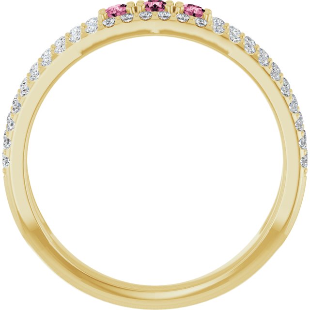 / Ring / Set / 14K Yellow / Natural Pink Tourmaline / Round / 2 Mm / Natural Diamond / Polished / Natural Pink Tourmaline And 1/4 Ctw Natural Diamond Negative Space Ring