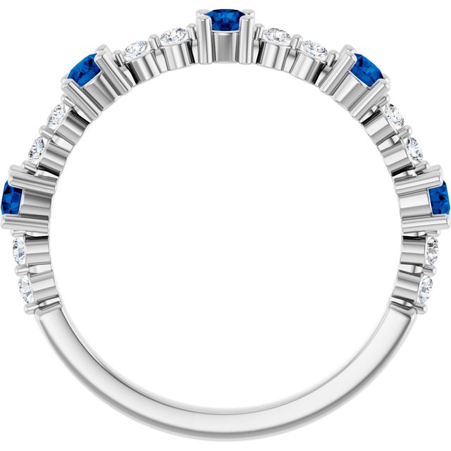 Description: Natural Blue Sapphire And 1/6 Ctw Natural Diamond Stackable Ring