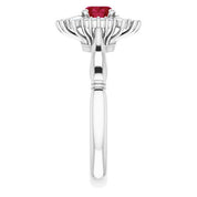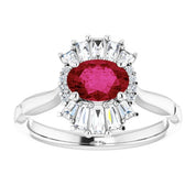 / Ring / Set / 14K White / Natural Ruby / Oval / 7 X 5 Mm / Natural Diamond / Polished / Natural Ruby And 1/4 Ctw Natural Diamond Halo-Style Ring