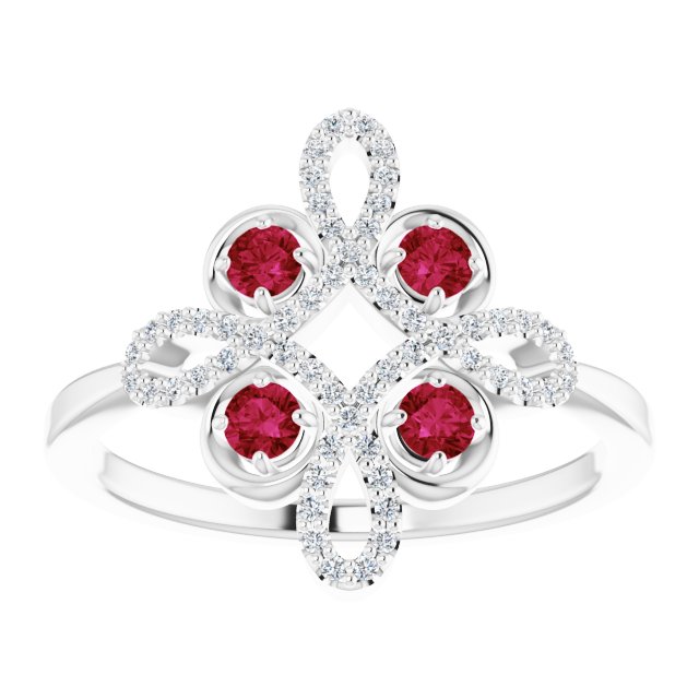 14K White Natural Ruby & 1/8 CTW Natural Diamond Semi-Set Clover Ring