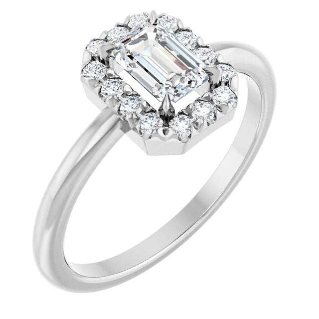 / Ring / Set / 14K White / Natural White Sapphire / Emerald / 6 X 4 Mm / Natural Diamond / Polished / Natural White Sapphire And 1/5 Ctw Natural Diamond French-Set Halo-Style Ring