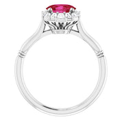 / Ring / Set / Sterling Silver / Natural Ruby / Oval / 7 X 5 Mm / Natural Diamond / Polished / Natural Ruby And 1/4 Ctw Natural Diamond Halo-Style Ring