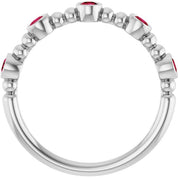 / Ring / Set / Sterling Silver / Natural Ruby / Round / 2.5 Mm / Polished / Natural Ruby Stackable Beaded Ring