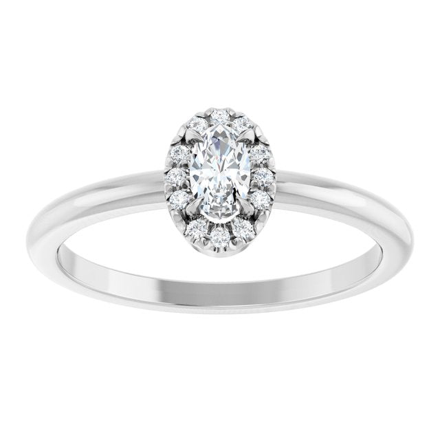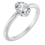 / Ring / Set / Sterling Silver / Natural White Sapphire / Oval / 5 X 3 Mm / Natural Diamond / Polished / Natural White Sapphire And .05 Ctw Natural Diamond French-Set Halo-Style Ring
