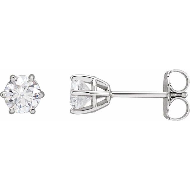 / Platinum / Set / Round / Natural Diamond / Pair / 4.5Mm :: 3/4 Ctw / I1, G-H / Friction / Friction Backs Included / 6-Prong / Polished / 3/4 Ctw Natural Diamond 6-Prong Wire Basket Earrings