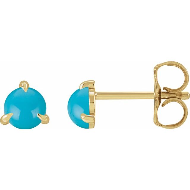 / 14K Yellow / Set / Round / Natural Turquoise / Pair / 4 Mm / Friction / Friction Backs Included / 3-Prong / Polished / Cabochon Natural Turquoise Claw-Prong Earrings