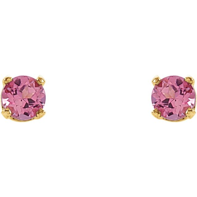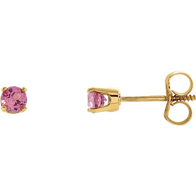 / 14K Yellow / Set / Round / Natural Pink Tourmaline / Pair / 3 Mm / Threaded / Threaded Backs Included / 4-Prong / Polished / Youth Earrings With Backs