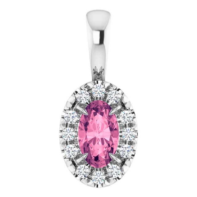 / Pendant / Set / Sterling Silver / Oval / Natural Pink Tourmaline / 5 X 3Mm :: 0.05 Ctw / Natural Diamond / I1, G-H / Polished / Natural Pink Tourmaline And .05 Ctw Natural Diamond French-Set Halo-Style Pendant