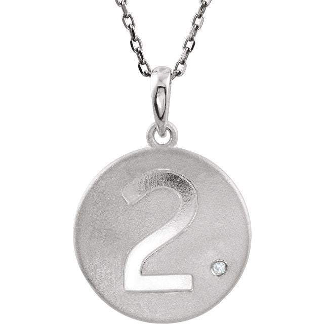 Sterling Silver .005 CT Natural Diamond Numeral 2 18" Necklace