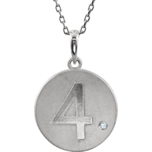 Sterling Silver .005 CT Natural Diamond Numeral 4 18" Necklace