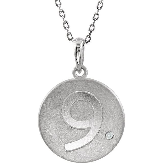 Sterling Silver .005 CT Natural Diamond Numeral 9 18" Necklace