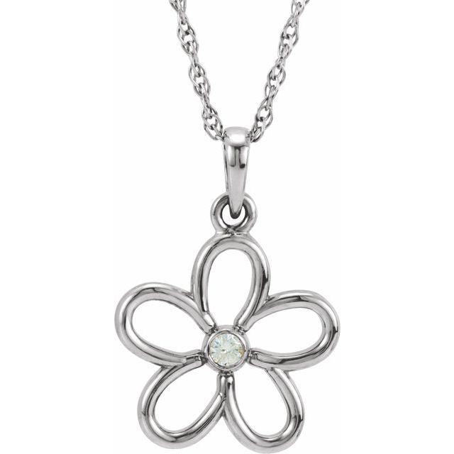 Sterling Silver .03 CT Natural Diamond Flower 18" Necklace