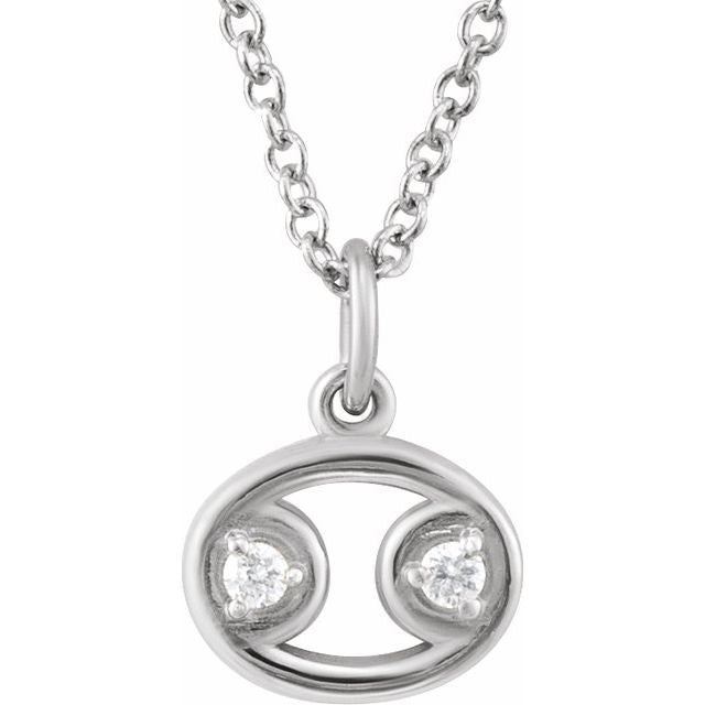 Sterling Silver .03 CTW Natural Diamond Cancer Zodiac 16-18" Necklace