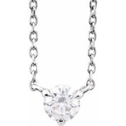 / Necklace / Set / Sterling Silver / Round / Natural Diamond / 4Mm :: 1/5 Ct / I1, G-H / 16-18 In / Polished / 1/5 Ct Natural Diamond 3-Prong Claw Prong Necklace